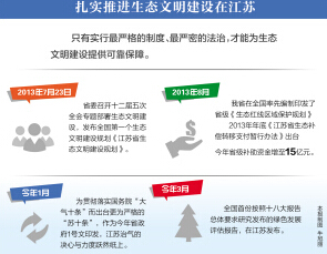 “希望江苏在‘率先’‘带头’‘先行’内涵中将生态文明作为一个标杆。”去年全国两会上,习近平总书记的嘱托,赋予江苏一份沉甸甸的责任,也为江苏自觉探索生态文明的率先之路增添了强大动力。